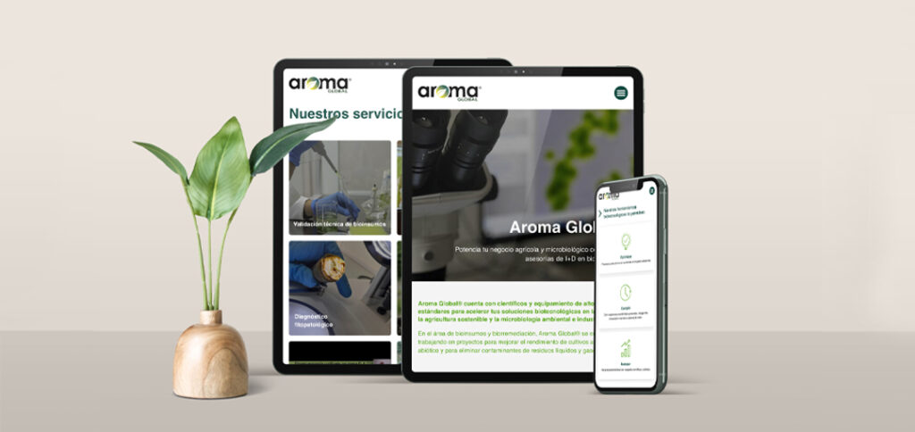 Una web que posiciona a Aroma Global como referente en innovación sostenible, facilitando la comprensión de su oferta biotecnológica para potenciar negocios agrícolas.